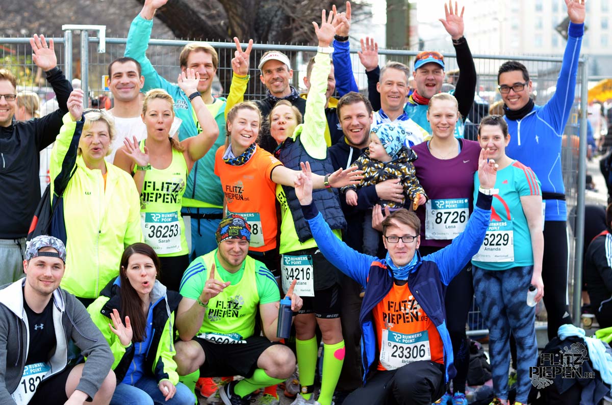 Die Wettervorhersage verspricht 21°C. Zum ersten Mal in diesem Jahr hole ich die kurze Laufhose aus dem Schrank. Dazu das neon-orangefarbene Flitzpiepen-Shirt. Es ist nicht nur mein erstes Rennen über die Halbmarathondistanz, es ist auch meine Premiere als Flitzpiepe. Ich bin stolz ein Teil dieser Gemeinschaft zu sein! Gemeinsam stehen wir am Treffpunkt zusammen und von allen Seiten wird mir Mut zugesprochen. „Du schaffst das!“ Ich bin beflügelt und gerührt.